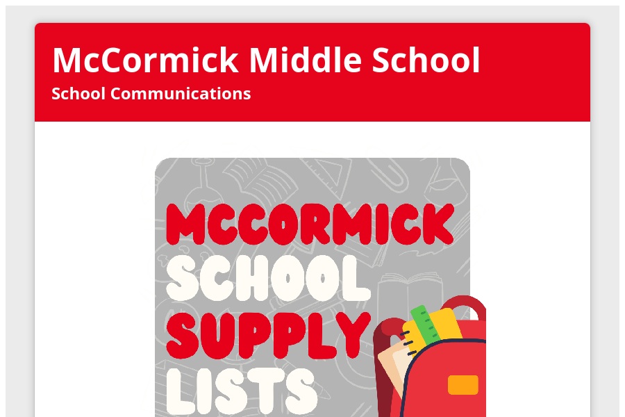 McCormick Middle School School Communications McCormick Middle School Supply Lists Are Live! Get a head start on back-to-school prepMcCormicks 202425 supply list. . .